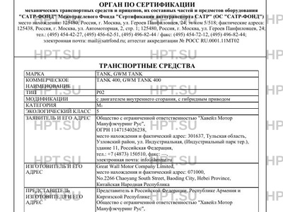 | Коммерческое наименование | TANK 400, GWM TANK 400 |