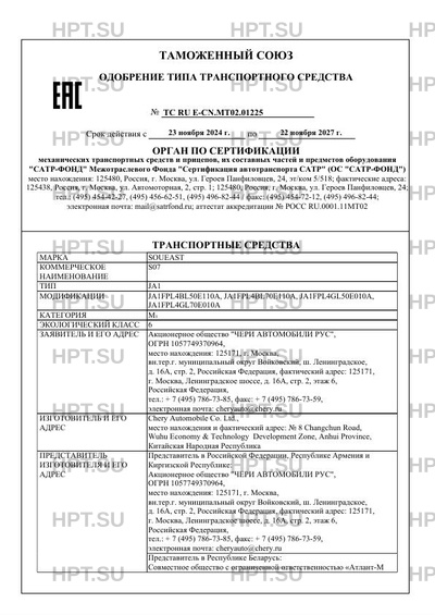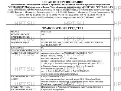 Заявитель Акционерное общество "ЧЕРИ АВТОМОБИЛИ РУС", ОГРН 1057749370964, место нахождения: 125171, г. Москва, вн.тер.г. муниципальный округ Войковский, ш. Ленинградское, д. 16А, стр. 2, Российская Федерация, фактический адрес: 125171, г. Москва, Ленинградское шоссе, д. 16А, стр. 2, этаж 6, Российская Федерация, тел.: + 7 (495) 786-73-85, факс: + 7 (495) 786-73-59, электронная почта: cheryauto@chery.ru