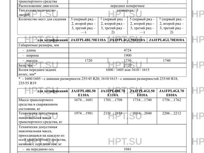 Модификации JA1FPL4BL50E110A, JA1FPL4BL70E110A, JA1FPL4GL50E010A, JA1FPL4GL70E010A