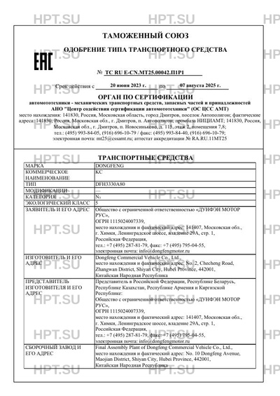 Полное ОТТС ТС RU E-CN.МТ25.00042.П1Р1