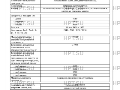 | Исполнение загрузочного пространства | самосвальный кузов, откидывающийся назад |