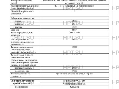 Кол-во мест для сидения (M2, M3, L) 53 (51 + 1 (водитель) + 1 (член экипажа))