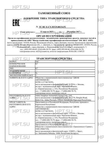 | Предприятие-изготовитель | Anhui Jianghuai Automobile Group Corp., Ltd. |