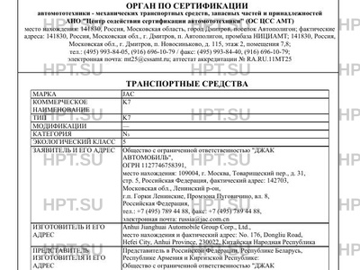 | Орган по сертификации | Орган по сертификации автомототехники - механических транспортных средств, запасных частей и принадлежностей "Центр содействия сертификации автомототехники" (АНО "ЦСС АМТ") |