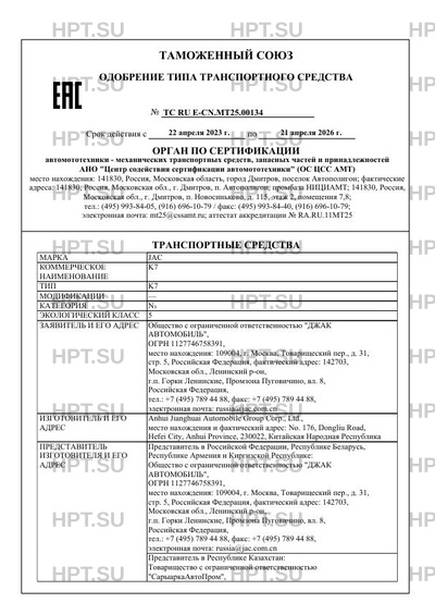 | Номер документа | ТС RU Е-CN.МТ25.00134 |