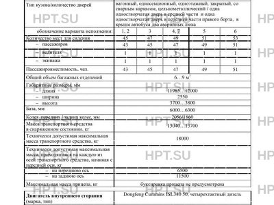 | ДВС | Dongfeng Cummins ISL340 50; Dongfeng Cummins ISL9.5-340E51A; Dongfeng Cummins ISL9.5-385E51A |