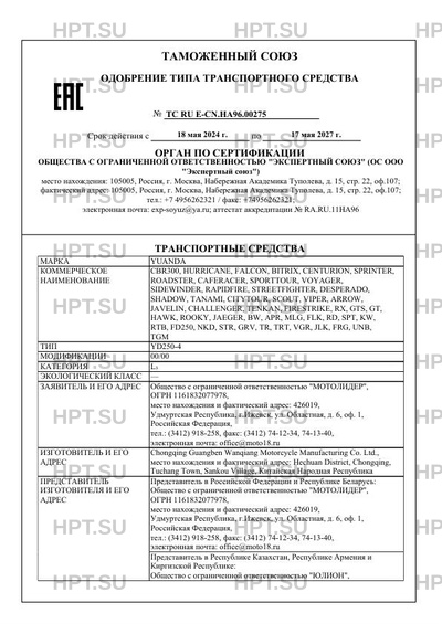 Полное ОТТС ТС RU E-CN.НА96.00275