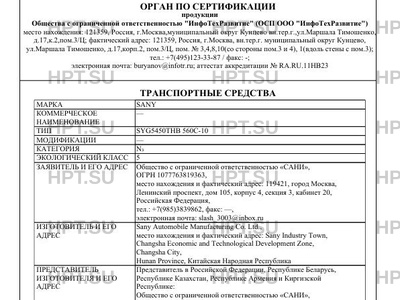 | Тип ТС | SYG5450THB 560C-10 |