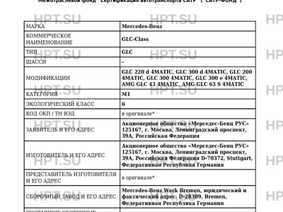 | Предприятие-изготовитель | Акционерное общество "Мерседес-Бенц РУС" 125167, г. Москва, Ленинградский проспект, 39А, Российская Федерация D-70372, Stuttgart, Федеративная Республика Германия |