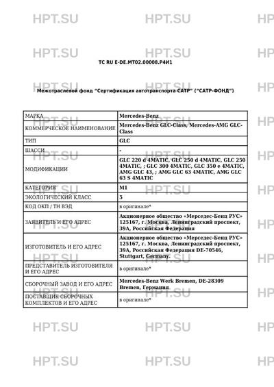 | Коммерческое наименование | Mercedes-Benz GLC-Class, Mercedes-AMG GLC- Class |