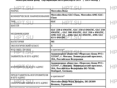 | Предприятие-изготовитель | Акционерное общество "Мерседес-Бенц РУС" 125167, г. Москва, Ленинградский проспект, 39А, Российская Федерация DЕ-70546, Stuttgart, Germany. |