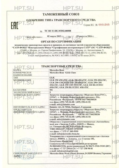 | Коммерческое наименование | Mercedes-Benz GLK-Сlass |