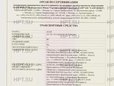 | Коммерческое наименование | A3, S3, A3 Cabriolet, S3 Cabriolet |