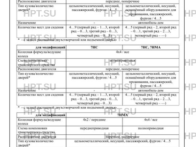 | Тип кузова/кол-во дверей | цельнометаллический, несущий, пассажирский, фургон / 4…5 цельнометаллический, несущий, оснащённый оборудованием для проживания, пассажирский, фургон / 4…5 цельнометаллический, несущий, пассажирский, фургон / 4…5 ий, несущий, пассажирский, фургон / 4…5 |