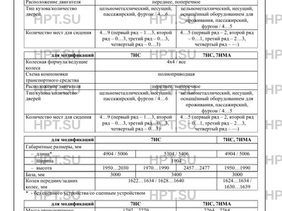 | Тип кузова/кол-во дверей | цельнометаллический, несущий, пассажирский, фургон / 4…6 цельнометаллический, несущий, оснащённый оборудованием для проживания, пассажирский, фургон / 4…5 |
