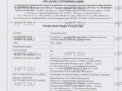 | Коммерческое наименование | Transporter, Caravelle, Multivan, Multivan Startline, Business, California Beach, California, Kombi, Widder 7HC, 7HMA |