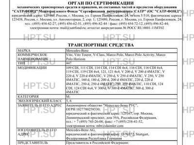 | Сборочный завод | Mercedes-Benz Espana S.A.U., юридический и фактический адрес: С/Las Arenas 1, ES-01015 Vitoria, Королевство Испания Westfalia Mobil GmbH, юридический и фактический адрес: 33378 Rheda-Wiedenbruck, Федеративная Республика Германия |