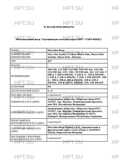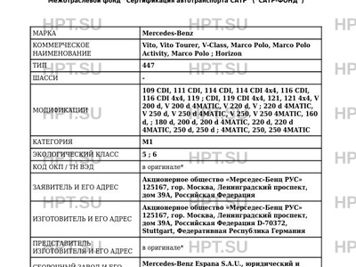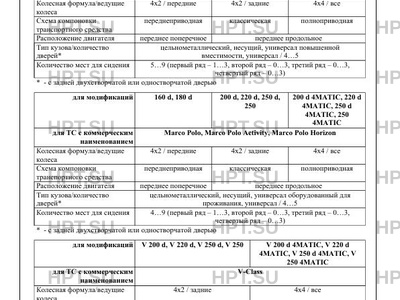 Коммерческое наименование Vito, Vito Tourer, V-Class, Marco Polo, Marco Polo Activity, Marco Polo; Horizon