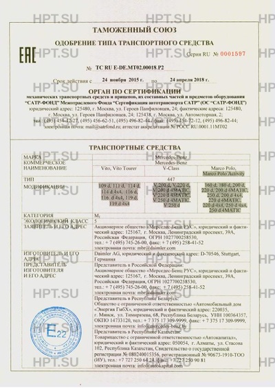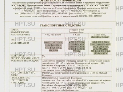 | Коммерческое наименование | Mercedes-Benz Vito, Vito Tourer V-Class Marco Polo, Marco Polo Activity |