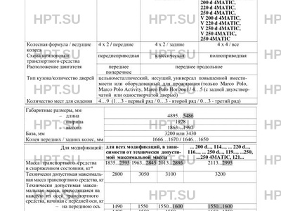 Оборудование ТС иммобилайзер, электронная система контроля устойчивости по заказу: устройство вызова экстренных оперативных служб, система помощи при парковке на базе активного рулевого управления и датчиков расстояния, система помощи при экстренном торможении на базе радарного датчика, подготовка под установку мобильного телефона (включая Bluetooth), система мониторинга давления воздуха в шинах, электронный автомобильный информационный центр с интегрированной точкой доступа к беспроводной сети WLAN. для мод. c коммерческим наименованием Mercedes-Benz Marco Polo, Mercedes-Benz Marco Polo Activity, Mercedes-Benz Marco Polo Ноrizon: спальные места, трансформируемые из сидений, стол; только для Mercedes-Benz Marco Polo - кухонное оборудование, холодильник