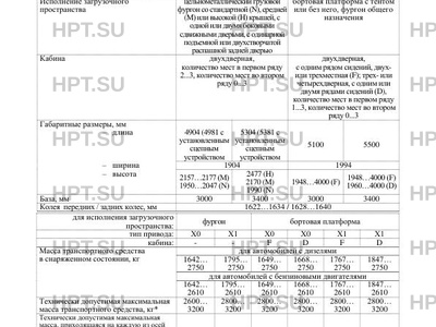 | Исполнение загрузочного пространства | цельнометаллическийгрузовой фургонсостандартной(N),средней (M)иливысокой(H)крышей,с однойилидвумябоковыми сдвижнымидверьми,содинарной подъемнойилидвухстворчатой распашнойзаднейдверью бортовая платформа с тентом или без него, фургон общего назначения |