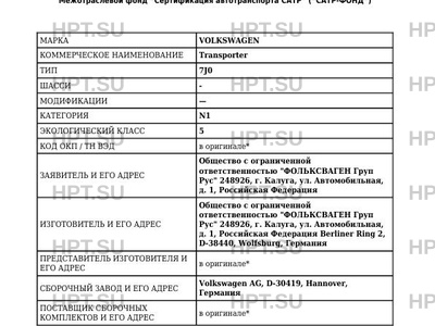 Предприятие-изготовитель Общество с ограниченной ответственностью "ФОЛЬКСВАГЕН Груп Рус" 248926, г. Калуга, ул. Автомобильная, д. 1, Российская Федерация Berliner Ring 2, D-38440, Wolfsburg, Германия