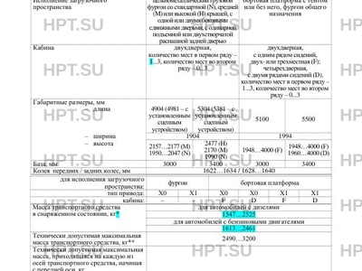 | Исполнение загрузочного пространства | цельнометаллическийгрузовой фургонсостандартной(N),средней (M)иливысокой(H)крышей,с однойилидвумябоковыми сдвижнымидверьми,содинарной подъемнойилидвухстворчатой распашнойзаднейдверью бортовая платформа с тентом или без него, фургон общего назначения |