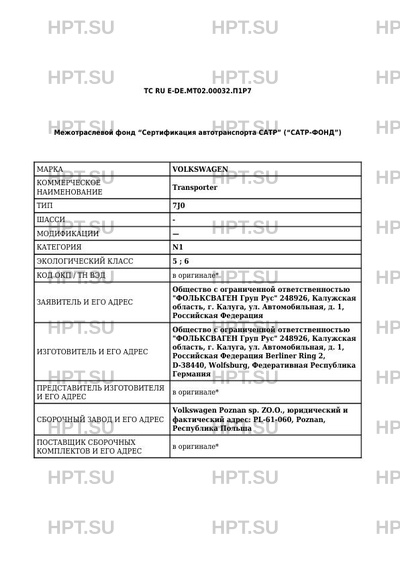 | Предприятие-изготовитель | Общество с ограниченной ответственностью "ФОЛЬКСВАГЕН Груп Рус" 248926, Калужская область, г. Калуга, ул. Автомобильная, д. 1, Российская Федерация Berliner Ring 2, D-38440, Wolfsburg, Федеративная Республика Германия |