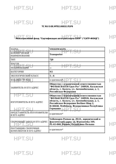 | Предприятие-изготовитель | Общество с ограниченной ответственностью "ФОЛЬКСВАГЕН Груп Рус" 248926, Калужская область, г. Калуга, ул. Автомобильная, д. 1, Российская Федерация Berliner Ring 2, D-38440, Wolfsburg, Федеративная Республика Германия |