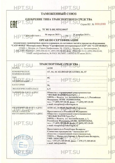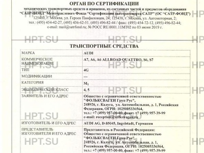 | Коммерческое наименование | A7, A6, A6 ALLROAD QUATTRO, S6, S7 |