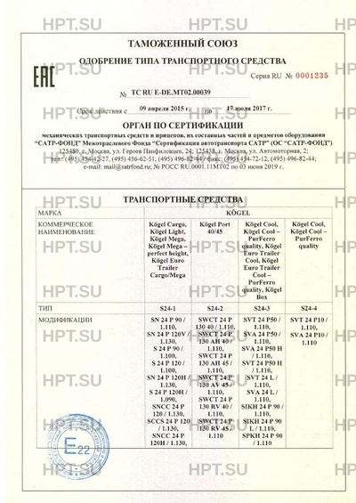 Коммерческое наименование Kögel Cargo, Kögel Light, Kögel Mega, Kögel Mega - perfect height, Kögel Euro T…