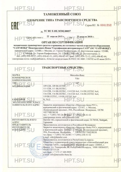 | Предприятие-изготовитель | Daimler AG, юридический и фактический адрес: D-70546, Stuttgart, Германия |