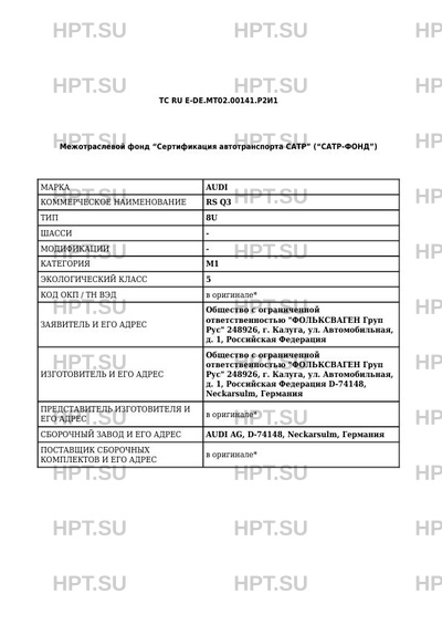 | Предприятие-изготовитель | Общество с ограниченной ответственностью "ФОЛЬКСВАГЕН Груп Рус" 248926, г. Калуга, ул. Автомобильная, д. 1, Российская Федерация D-74148, Neckarsulm, Германия |