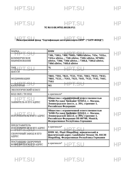 | Сборочный завод | BMW AG, Plant Dingolfing, юридический и фактический адрес: Landshuter Strasse 56, 84130 Dingolfing, Федеративная Республика Германия |