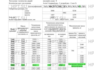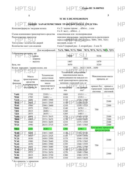 | Тип ТС | одвески, система звукового предупреждения об использовании ремней безопасности,… |