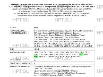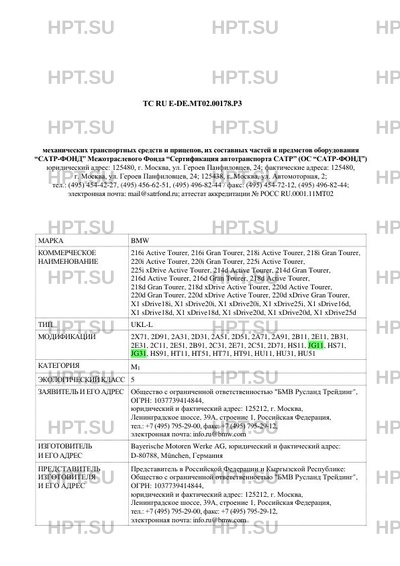 | Представитель изготовителя | Представитель в Российской Федерации и Кыргызской Республике: Общество с ограниченной ответственностью "БМВ Русланд Трейдинг", ОГРН: 1037739414844, юридический и фактический адрес: 125212, г. Москва, Ленинградское шоссе, 39А, строение 1, Российская Федерация, тел.: +7 (495) 795-29-00, факс: +7 (495) 795-29-12, электронная почта: info.ru@bmw.com 2 Представитель в Республике Беларусь: Частное производственное унитарное предприятие "АвтоСерт", УНН: 190741780, юридический и фактический адрес: 220113, г. Минск, ул. Мележа, 1, офис 434, Республика Беларусь, тел.: +375 (29) 642-70-55, факс: + 375 (17) 261-33-55, электронная почта: autocert@mail.ru Представитель в Республике Казахстан: Товарищество с ограниченной ответственностью "Торговый дом "АВТОЦЕНТР-БАВАРИЯ", БИН: 090740007820, юридический и фактический адрес: 050000, г. Алматы, Бостандыкский район, проспект Аль-Фараби, 107, Республика Казахстан, тел.: +7 (727) 390-00-22, факс: +7 (727) 273-75-50, электронная почта: info@bavaria.kz |