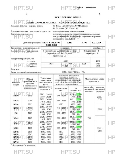 | Тип ТС | Применимость коммерческих наименований к обозначениям модификаций: X5 xDrive35i - KR01 X5 xDrive30d - KS41 X6 xDrive30d - KV21 X5 xDrive50i - KR61 X5 xDrive40d - KS61 X6 xDrive40d - KV41 X5 xDrive40e или X5 xDrive40e iPerformance - KT01 X5 M50d - KS81 X6 M50d - KV61 X5 sDrive25d - KT41 X6 xDrive35i - KU21 X5 xDrive25d - LS01 X6 xDrive50i - KU61 |