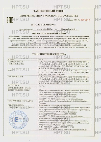 | Предприятие-изготовитель | MAN Truck & Bus AG, Dachauer Straβe 667, D-80995 München, Германия |