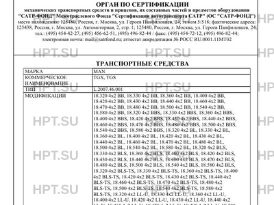 | Орган по сертификации | Орган по сертификации механических транспортных средств и прицепов, их составных частей и предметов оборудования "САTР-ФОНД" Межотраслевого Фонда "Сертификация автотранспорта САТР" (ОС "САТР-ФОНД") |