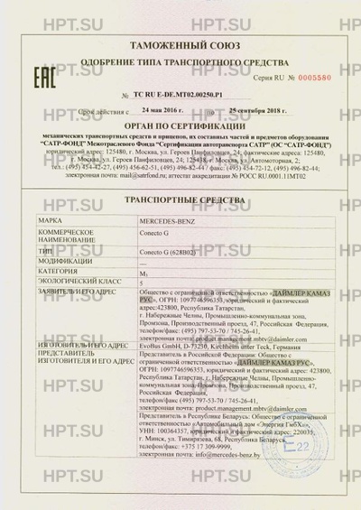 | Предприятие-изготовитель | EvoBus GmbH. D-73230, Kirchheim unter Teck, Германия. |