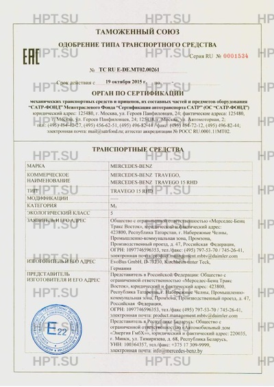 Коммерческое наименование MERCEDES-BENZ TRAVEGO, MERCEDES-BENZ TRAVEGO 15 RHD