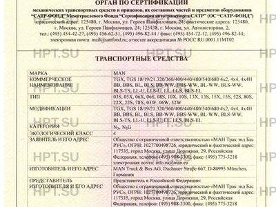 | Заявитель | Общество с ограниченной ответственностью "МАН Трак энд Бас РУС". 117535, город Москва, улица Дорожная, дом 29, Российская Федерация. ОГРН: 1027700498726. Тел. (495) 988-3300. Факс (495) 775-3218. Email info.ru@man.eu. |