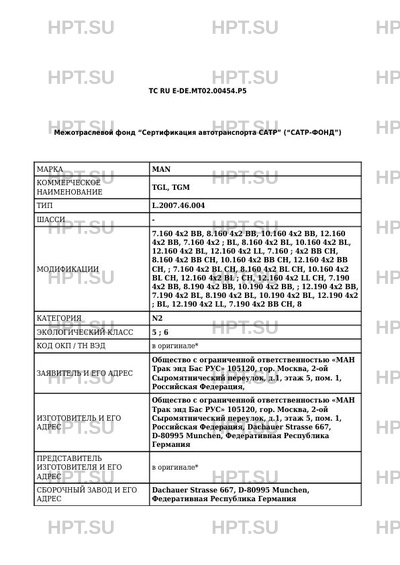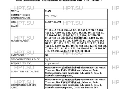 Представитель изготовителя Представитель в Российской Федерации, Кыргызской Республике и Республике Армения: Общество с ограниченной ответственностью «МАН Трак энд Бас РУС». 105120, гор. Москва, 2-ой Сыромятнический переулок, д.1, этаж 5, пом. 1, Российская Федерация. ОГРН: 1027700498726. Тел. (495) 122-0088. Факс (495) 123-8880.