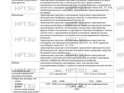 | Дополнительная информация | Транспортные средства не предназначены для перевозки опасных грузов. Транспортные средства, не оснащенные устройством вызова экстренных оперативных служб, не предназначены для перевозки твердых бытовых отходов и мусора. В случае несоответствия параметров транспортных средств значениям, установленным в пунктах 2.1 и 2.2 приложения № 5 к техническому регламенту Таможенного союза «О безопасности колесных транспортных средств», для передвижения транспортных средств по территории государств — членов Таможенного союза необходимо оформление специального разрешения. |