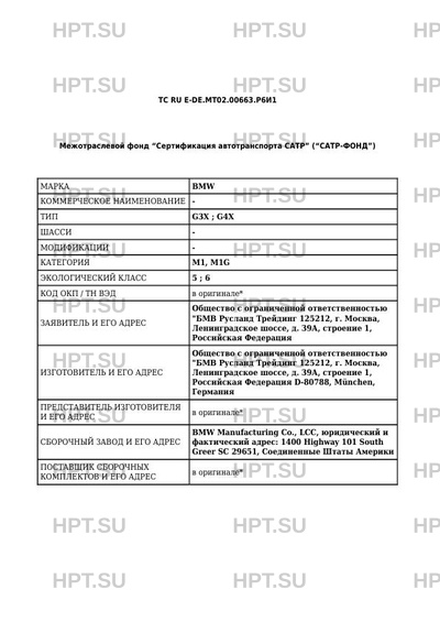 | Предприятие-изготовитель | Общество с ограниченной ответственностью "БМВ Русланд Трейдинг 125212, г. Москва, Ленинградское шоссе, д. 39А, строение 1, Российская Федерация D-80788, München, Германия |