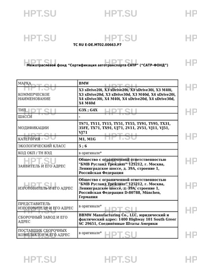 | Предприятие-изготовитель | Общество с ограниченной ответственностью "БМВ Русланд Трейдинг" 125212, г. Москва, Ленинградское шоссе, д. 39А, строение 1, Российская Федерация D-80788, München, Германия |
