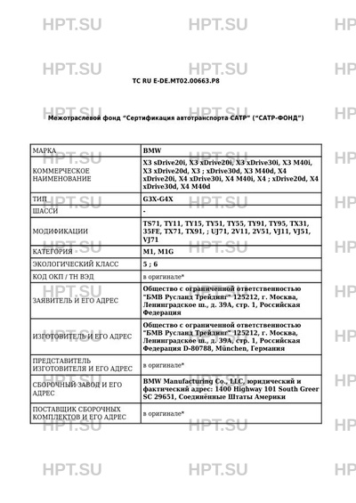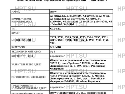 | Предприятие-изготовитель | Общество с ограниченной ответственностью "БМВ Русланд Трейдинг" 125212, г. Москва, Ленинградское ш., д. 39А, стр. 1, Российская Федерация D-80788, München, Германия |