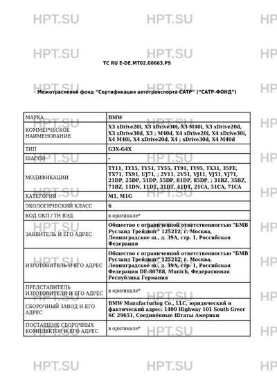 Предприятие-изготовитель Общество с ограниченной ответственностью "БМВ Русланд Трейдинг" 125212, г. Москва, Ленинградское ш., д. 39А, стр. 1, Российская Федерация DE-80788, Munich, Федеративная Республика Германия