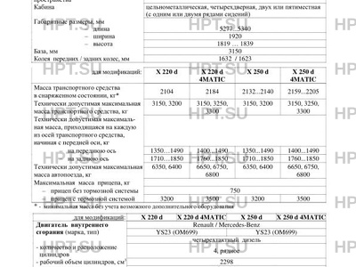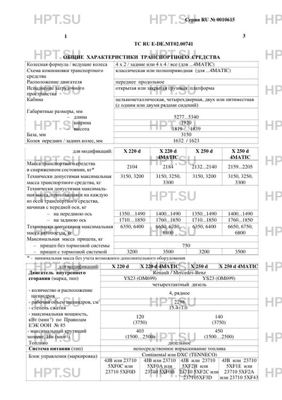 Тип ТС Возможные сочетания модификаций и типов кузова: VIN: с колесной формулой Модификации: 4х2 4х4 Х 220 d WDF470210... – – WDF470211... Х 220 d 4MATIC – WDF470212... X 250 d WDF470230... – – WDF470231... X 250 d 4MATIC – WDF470231... – WDF470232...