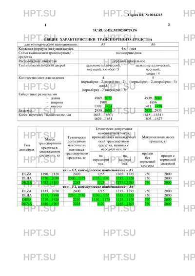 Тип ТС двигателя F2, коммерческое наименование - A7 DLZA 1890…2120 2470 1255 1305…1335…